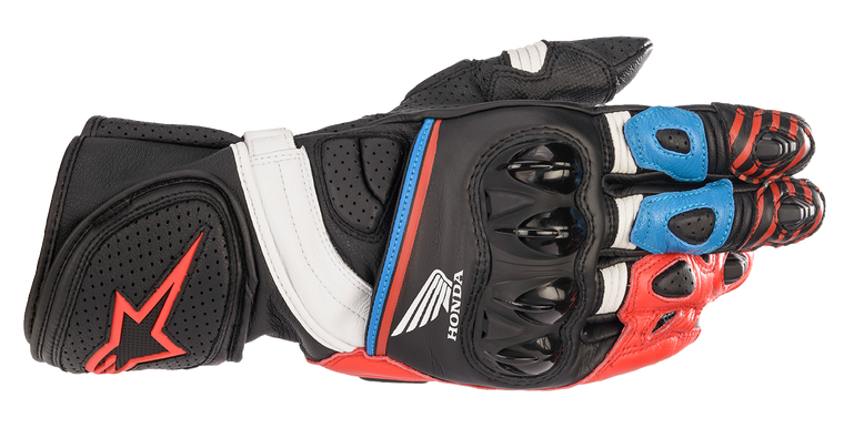 Alpinestars - Honda GP Plus R v2 Gloves - Black/Bright Red/Blue - Small - Honda GP Plus R v2 Gloves - 3556321-1317-S