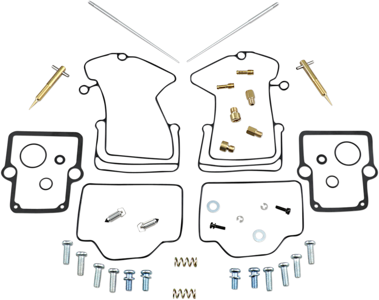 Kit includes all necessary O-rings, gaskets, jets, needle, mixture screw, float bowl screws, float valve needle and seat (needle jet and other pressed-in jets are not included in kit)