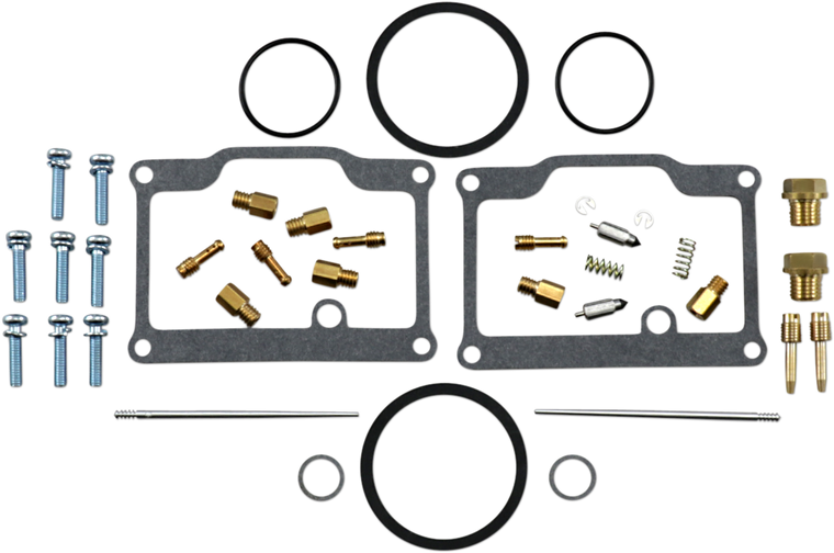 Kit includes all necessary O-rings, gaskets, jets, needle, mixture screw, float bowl screws, float valve needle and seat (needle jet and other pressed-in jets are not included in kit)