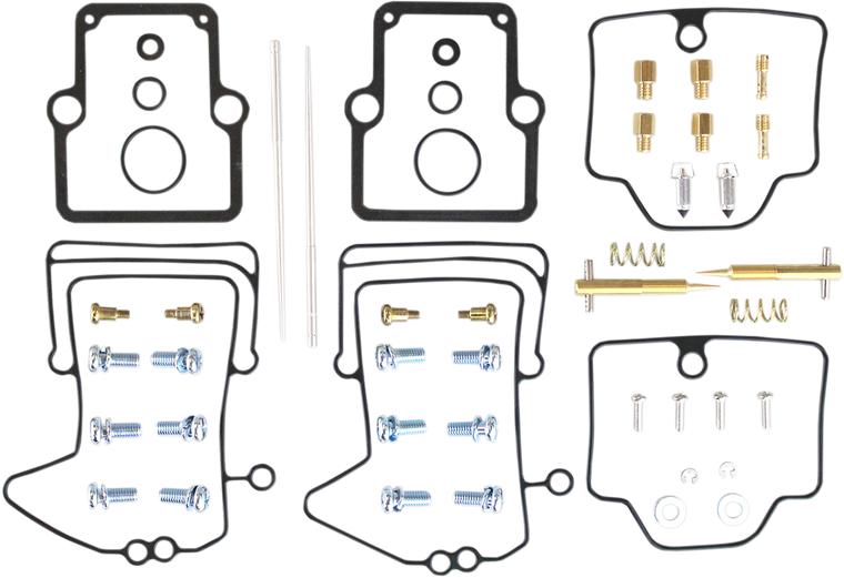 Kit includes all necessary O-rings, gaskets, jets, needle, mixture screw, float bowl screws, float valve needle and seat (needle jet and other pressed-in jets are not included in kit)