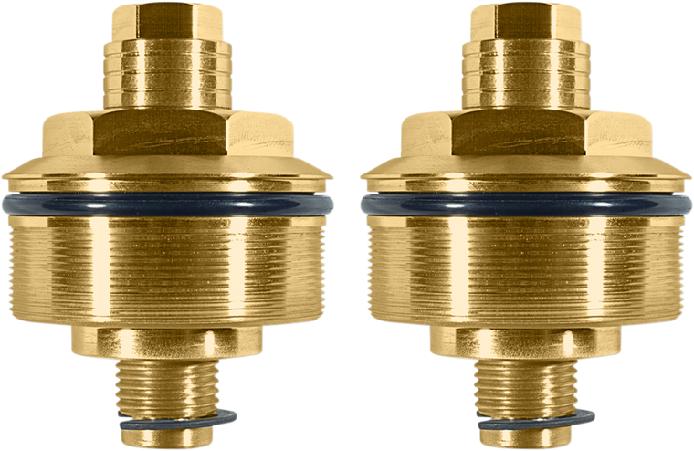 These adjusters will replace your stock fork caps and allow you to fine tune your front suspension, with almost an inch of preload adjustment Easily dial in your front-end preload without having to remove the stock caps and cutting spacers, with a turn of the adjuster, up or down CNC machined out of 6061 aluminum Comes with O-rings and ready to install Made in the U.S.A.